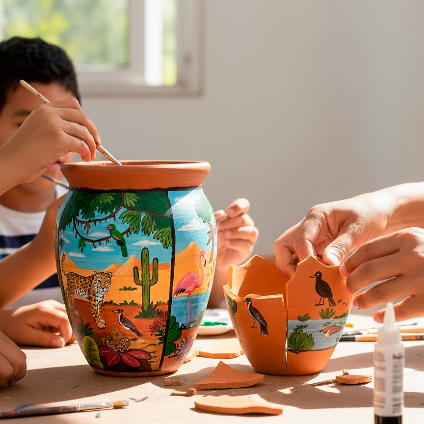 En este taller de sensibilización, transformaremos jarritos de barro en representaciones de nuestros espacios naturales más valiosos. Al pintar un pedazo de la naturaleza mexicana, entenderemos su belleza, pero también su vulnerabilidad.